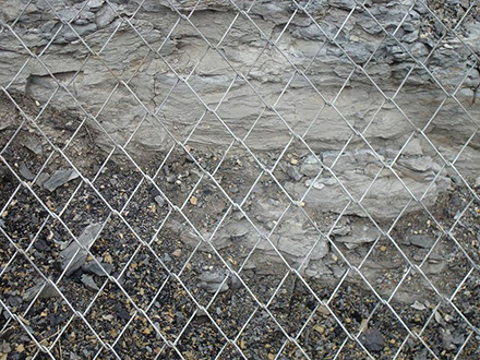 煤礦基道護(hù)幫、護(hù)頂、做假頂?shù)睦硐氩牧稀S绕涫清冧\菱形編織網(wǎng)具用絲網(wǎng)相連菱形勾編,即使一根絲斷裂,也不會(huì)影響其它部分,解決了對(duì)頂板,煤幫支護(hù)時(shí)的容易松散、易易垂網(wǎng)的問題,是煤礦基道護(hù)幫、護(hù)頂、巷道支護(hù)的較理想材料。